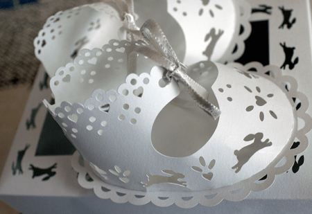 They are little dotes, aren’t they? These are just plain white with a little satin ribbon but could be embellished with pearl beads and other gorgeous things.