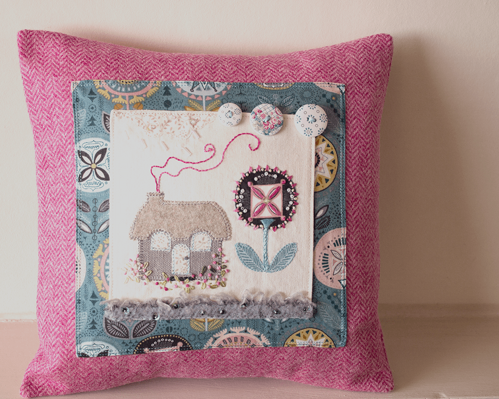 Finally, a mid-weight linen panel with an appliqué cottage and tree to decorate in the middle.