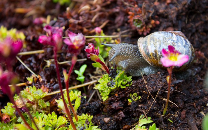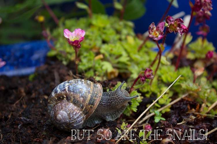 Two of them chomping away on my pink-thingummy potted plants! I left them to it. I have a soft spot for snails.
