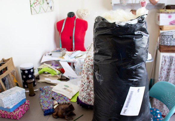 Remember the bag of wooly bits I ordered from Amazon for stuffing the rabbits and Tilda dolls? It arrived today.