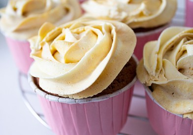 The cupcakes and chocolate sponge with coffee buttercream topping.