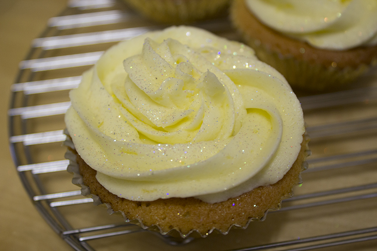 The icing was a blend of buttercream with mascarpone, tiny shreds of lemon zest and topped off with a sprinkle of poppy seeds.