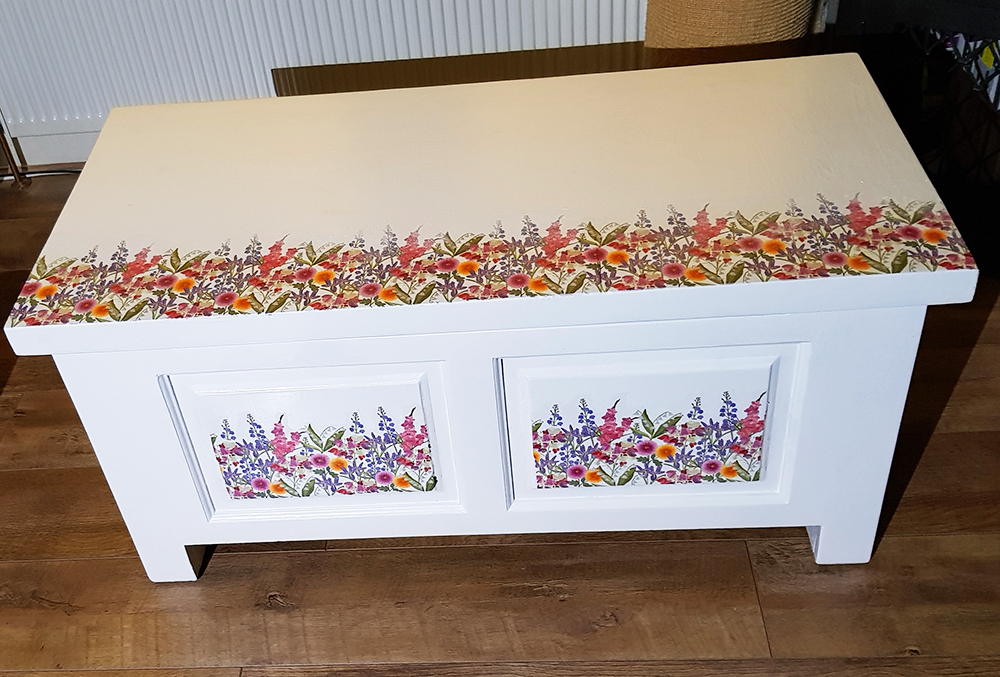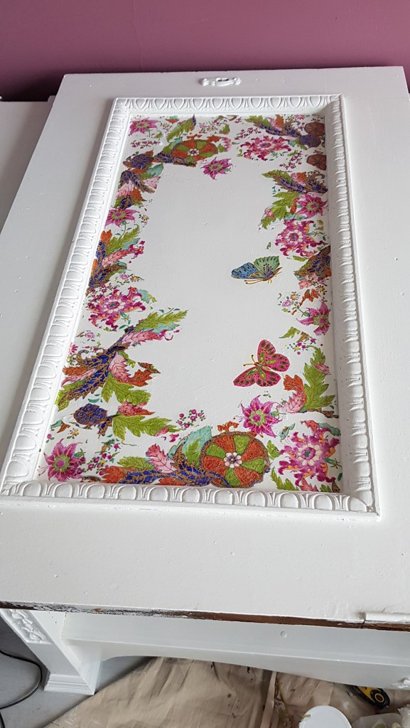 This is a pic of one of the doors. I used paper napkins and Mod Podge to add some colour and decoration.