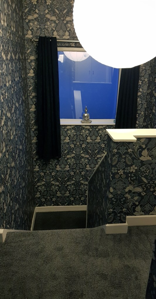 Just before Christmas we had the landing, stairs and hall papered, painted and had a fresh new carpet for the cats to scratch up. It’s as Art Nouveau as I could find without paying extortionate William Morris prices. More pattern.