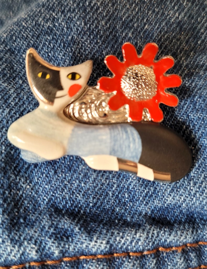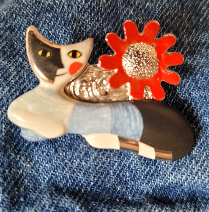 I’ve loved this woman’s cat paintings for years and years. I have images of her prints on all my devices! Then recently, spotted this brooch on Etsy: