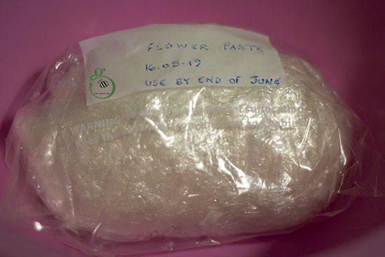 I’m fairly sure that petal paste, flower paste and gum paste are one and the same thing. Flower paste is used to make delicate, life-like ‘fondant’ creations such as … flowers! It’s elastic but tough and can be rolled out to an almost transparent thickness without tearing.