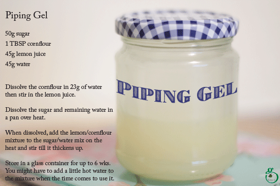 Piping gel is useful as a light glue, for example, when working with wafer paper, and has the useful property of drying clear. If you need a more substantial glue, dissolve some sugar paste into it. You can also use piping gel to: