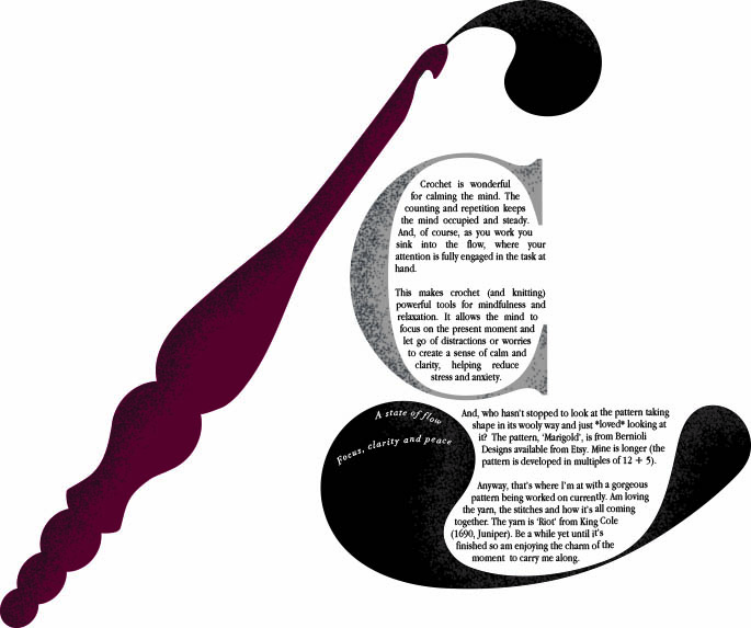 The latest and lovely crochet project on the go. The pattern, ‘Marigold’ is from Bernioli Designs available from Etsy. The yarn is King Cole’s, ‘Riot’ in Juniper.