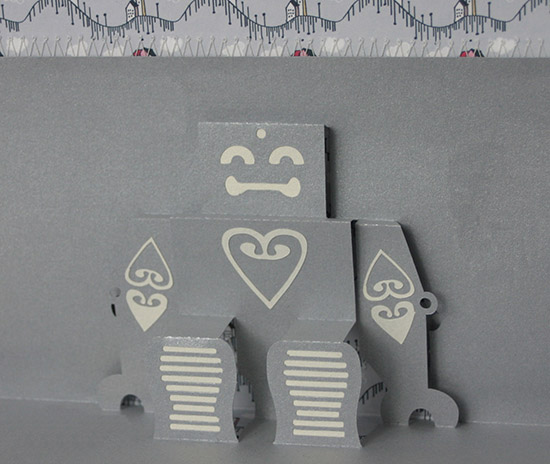 A lovely little robot pop-up called Bindy. It folds flat inside a card then pops up when it’s opened. I think this works for males and females for a whole load of different occasions.