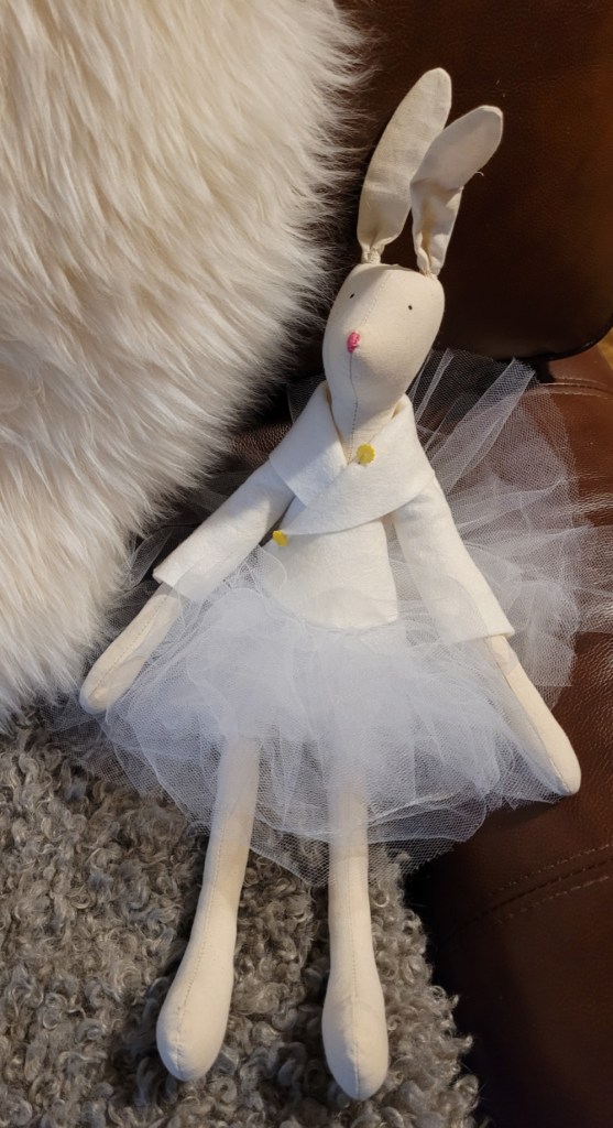 Finished my winter hare with her gift bag. She’s in place of a stocking for me. Absolutely loved making her.