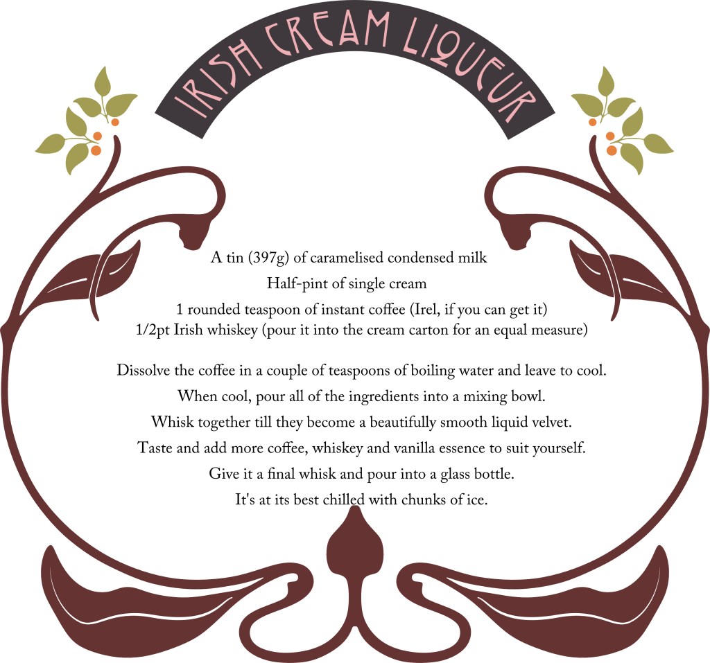 The recipe. Better than Baileys. Substitute brandy or Southern Comfort for whiskey, if you prefer.